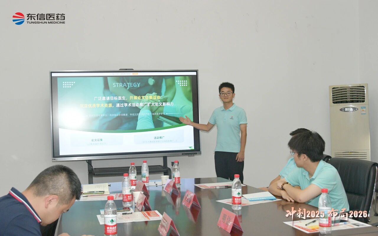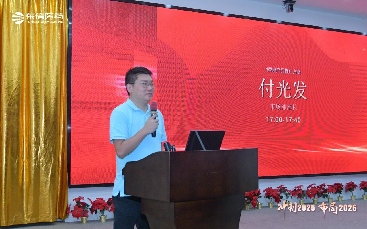 市场部副部长朱柏才通报了科技产品销售竞赛、终端信息窗建设挑战赛的排名情况,汇报了市场部围绕冲刺年度目标制定的重点工作计划。市场部部长付光发通过对当前整体医药市场环境、全终端药品增速及品类销售趋势等核心数据的分析,针对公司产品销售过程中面临的实际问题,遵循“保存量、谋增量”的原则,从新增产品规格规划、OTC零售赋能举措、线上电商销售布局三个维度,进行了详细的规划与讲解。