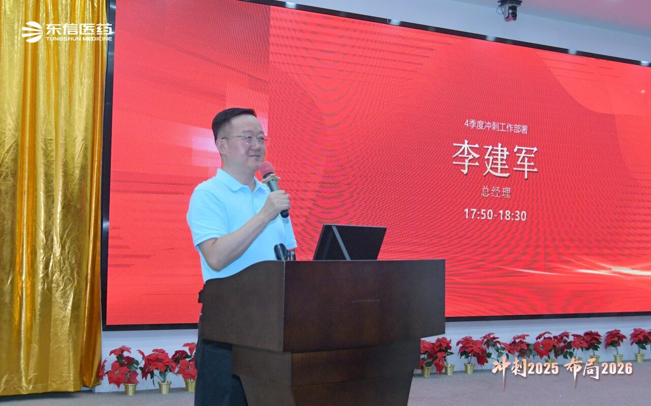 会议最后,东信医药总经理李建军作总结发言。他围绕“冲刺、收官、布局”三个维度,提出了具体要求: