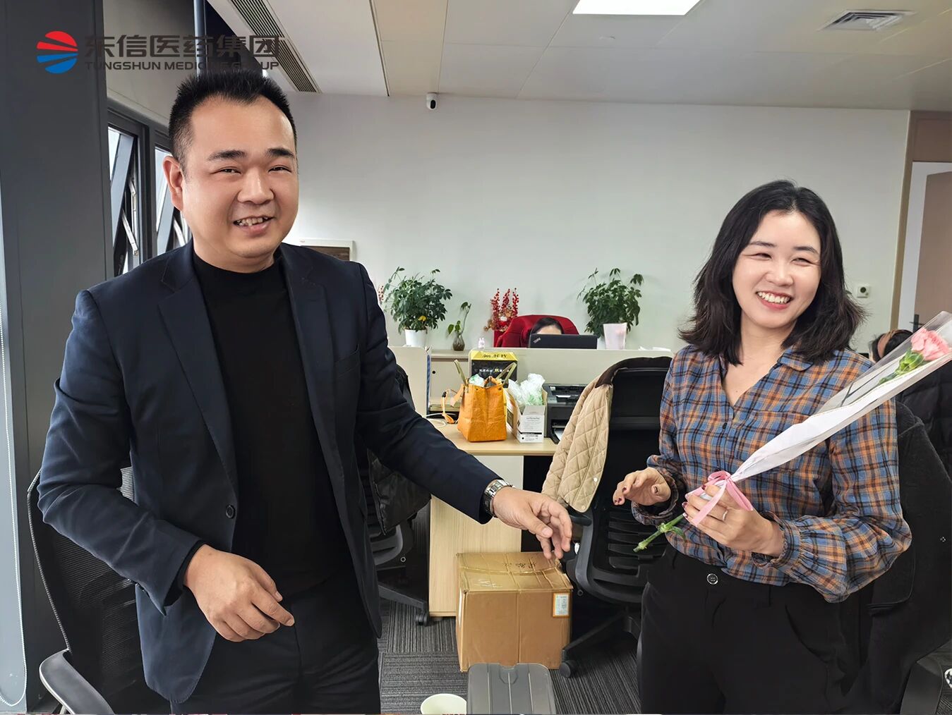 惊喜在上午悄然上线。公司男员工化身“送花使者”,手捧鲜花为每一位女同事送上节日的第一份祝福。一份鲜花,不只是仪式感的表达,更是公司对女性员工细腻关怀的注脚——从清晨开始,就让温暖触手可及。