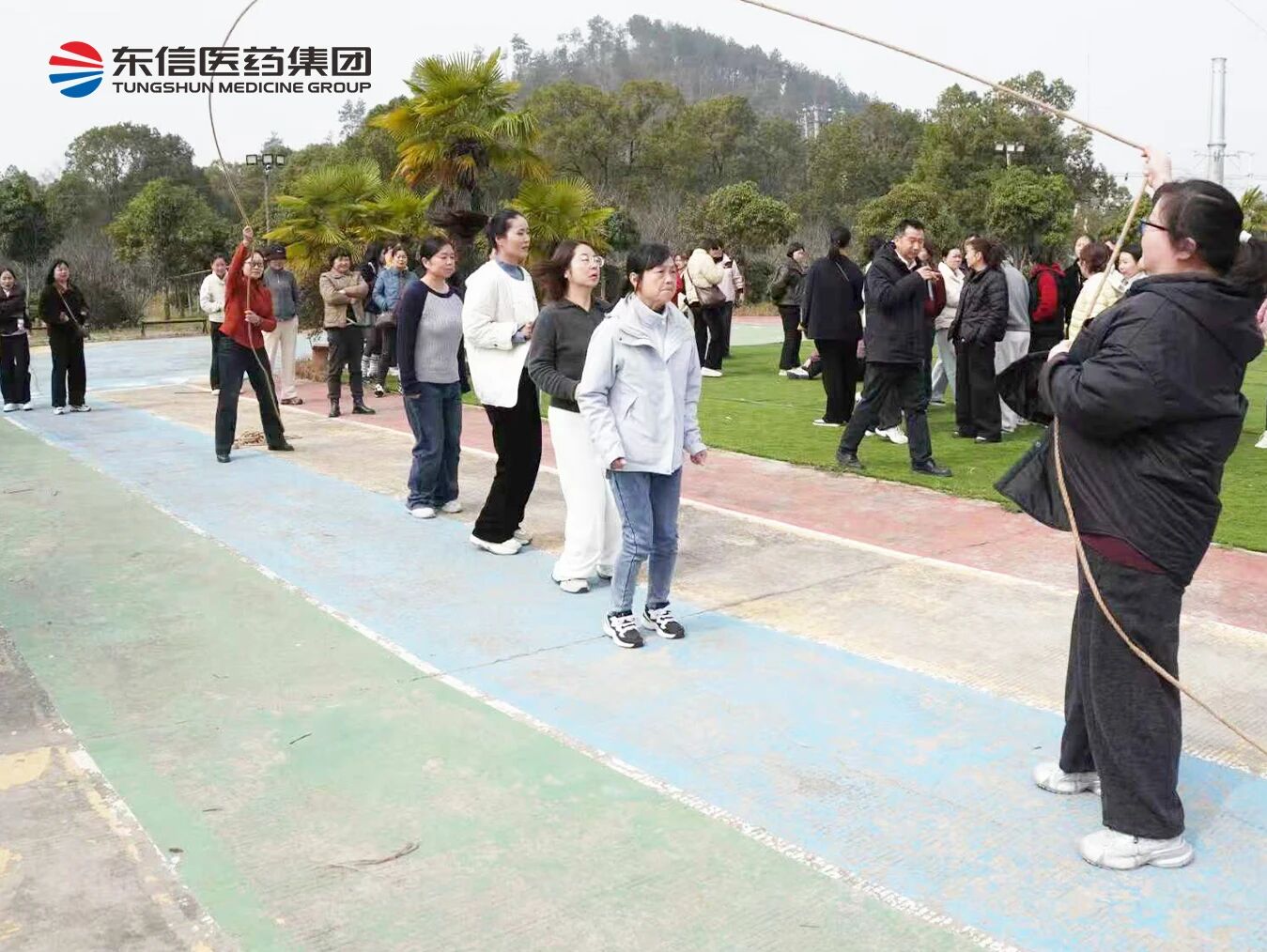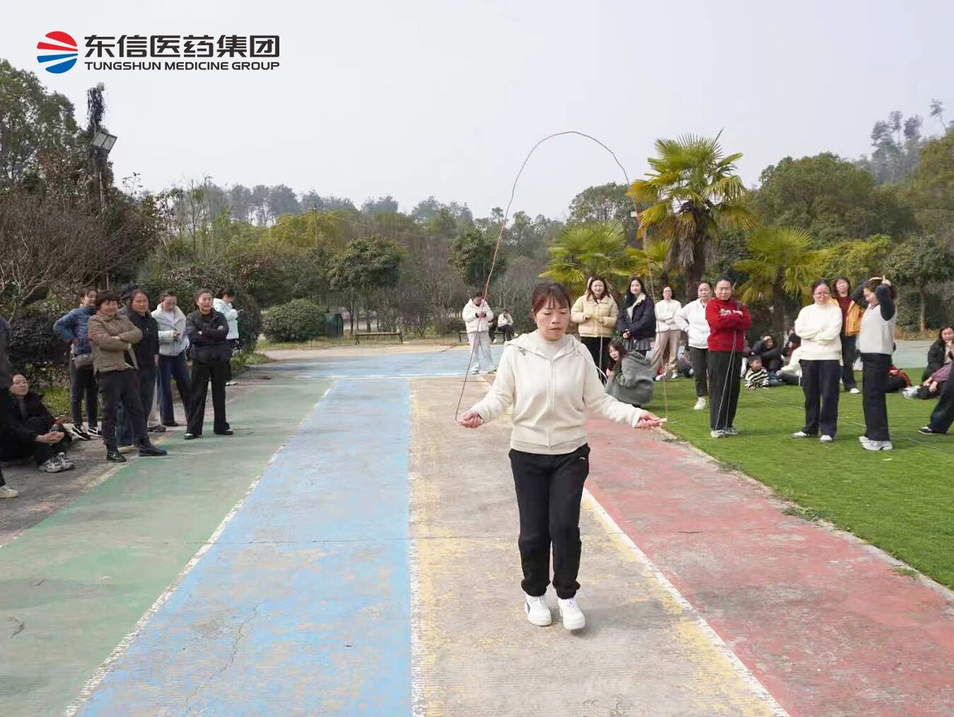 活动在欢声笑语中火热开启。单人跳绳区,选手们身姿轻盈、彩绳飞舞,展现出满满的活力与朝气;多人跳绳项目则考验着团队的默契,大家步调一致、节奏协同,每一次整齐的跳跃都是团队力量的生动体现。最扣人心弦的当属踢毽子接力赛,小小的毽子在脚尖翻飞起舞,每一次传递都凝聚着专注与协作,场上的精彩表现赢得阵阵喝彩。赛场上是奋力拼搏的身影,场下是此起彼伏的呐喊助威,欢笑声交织成春日里最动人的乐章。