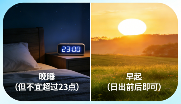 遵循 “夜卧早起”,尽量不晚于 23 点入睡,日出前后起床,保证肝经当令时(23 点 - 凌晨 3 点)深度睡眠,利于肝脏修复,早起则顺应阳气生发,减少困乏。