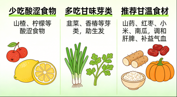 春季少吃山楂、柠檬等酸涩食物,避免阻碍阳气升发;多吃山药、红枣、小米、南瓜等甘温食材,以及韭菜、香椿等芽菜,健脾益气、扶助阳气。