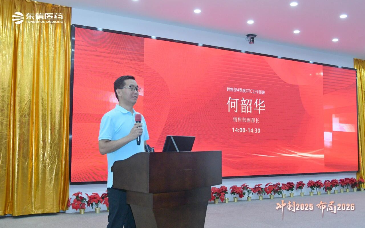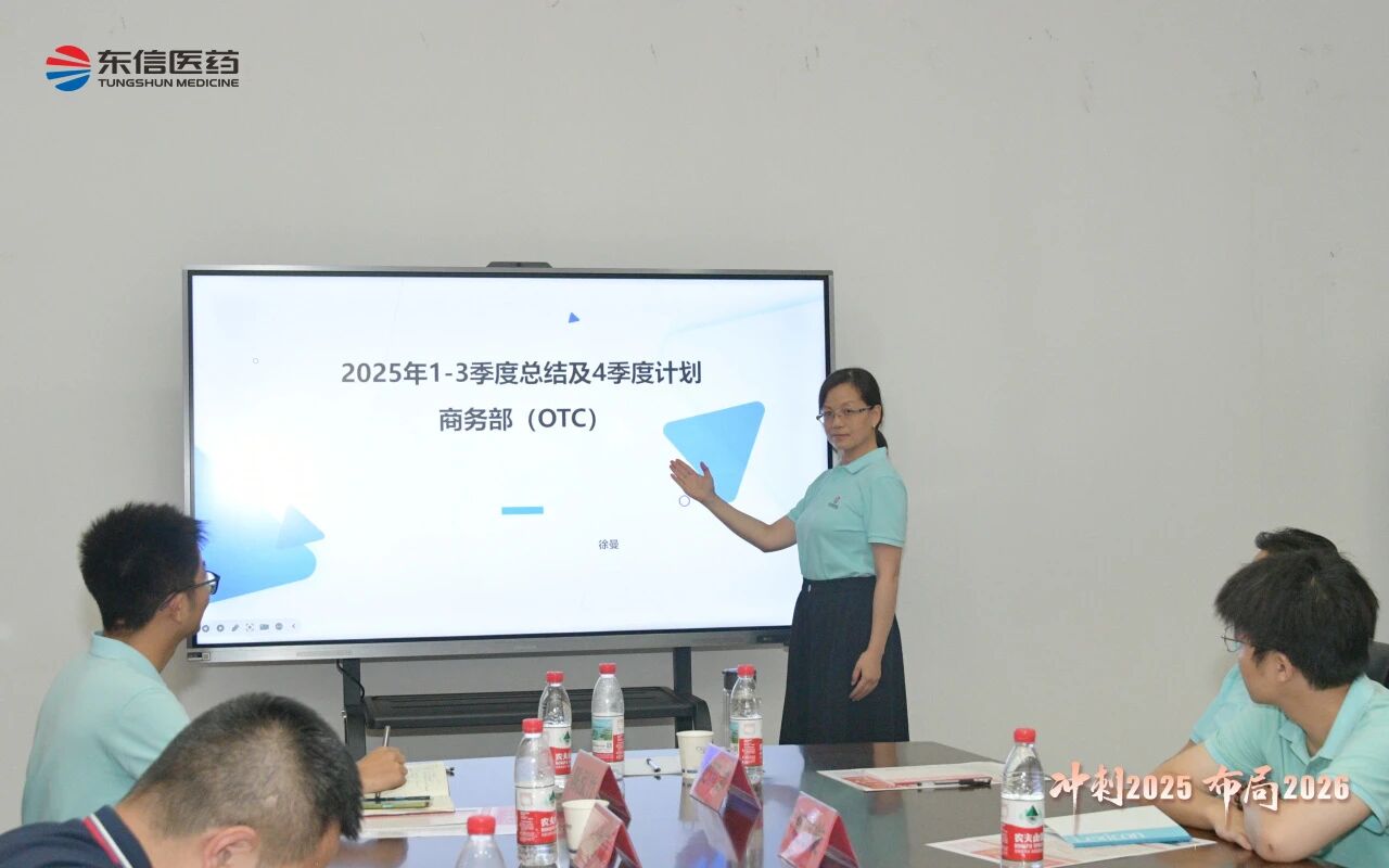 会上,销售部副部长何韶华聚焦OTC板块,详细汇报了四季度的总体工作思路、核心销售指标、重点产品销售策略及市场开拓计划,为OTC板块冲刺阶段的工作开展提供了清晰指引。销售部部长黄志雄、蒋文分别针对南区、北区前三季度的销售成果进行复盘,深入分析工作中的优势与不足。围绕“冲刺2025,布局2026”的会议主题,汇报了四季度的冲刺举措与重点工作计划。