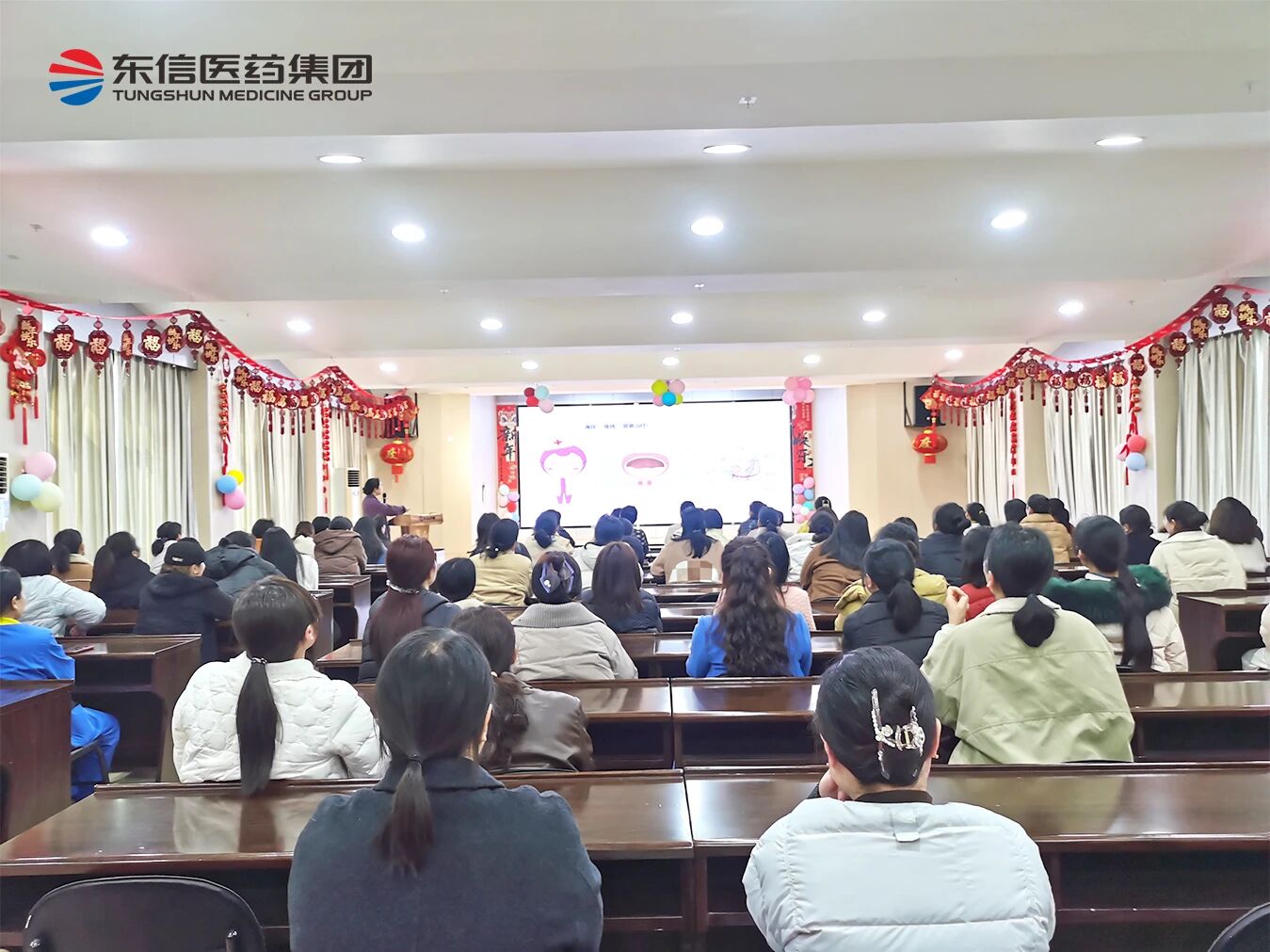 3月6日下午,一场女性健康专题知识讲座在公司温情开讲。东信药业特邀荆州市中心医院资深专家,为大家普及健康知识、解答日常困惑。从科学理念到实用保健,从理论讲解到互动答疑,专家用专业而温暖的方式,为每一位东信女性的身心健康保驾护航。